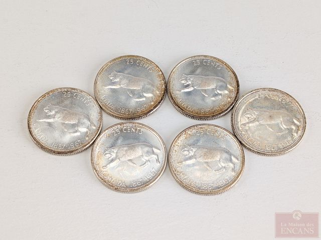 Lot # 111 - Lot de pièces canadiennes de vingt-cinq sous 1967 en argent