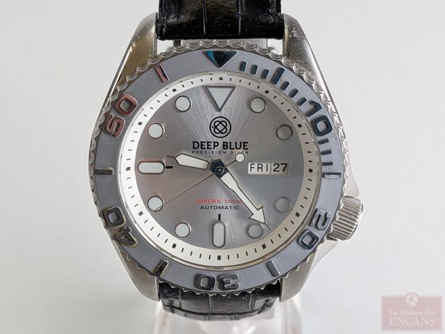 Lot # 207 - Montre de plongée Deep Blue cadran unidirectionnel, mouvement automatique mesurant 48.7 millimètres avec sa couronne signée et vissée, fonctionnelle VENDU