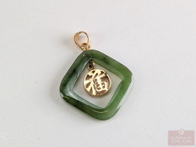 Lot # 117 - Pendentif en or 10k et jade, mesurant 1 pouce de hauteur