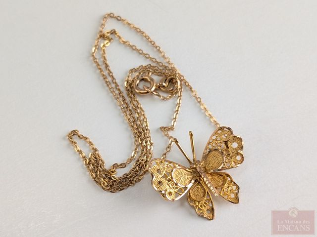 Lot # 104 - Chaine et pendentif en or 10k, la chaine mesurant 16 pouces de longueur