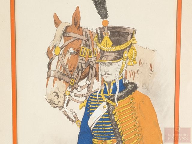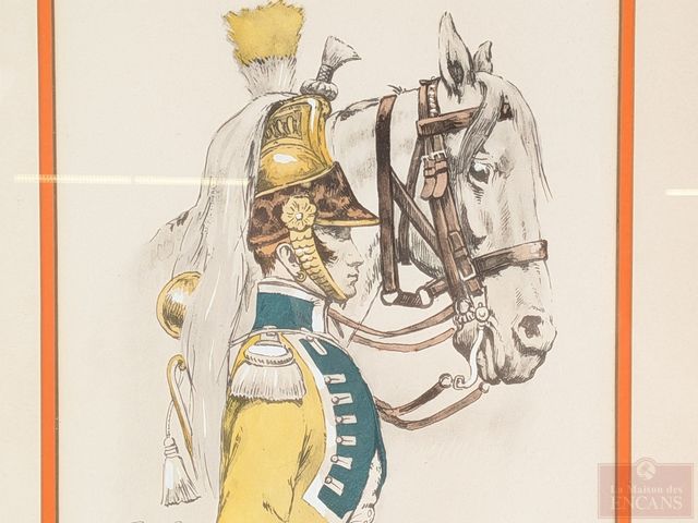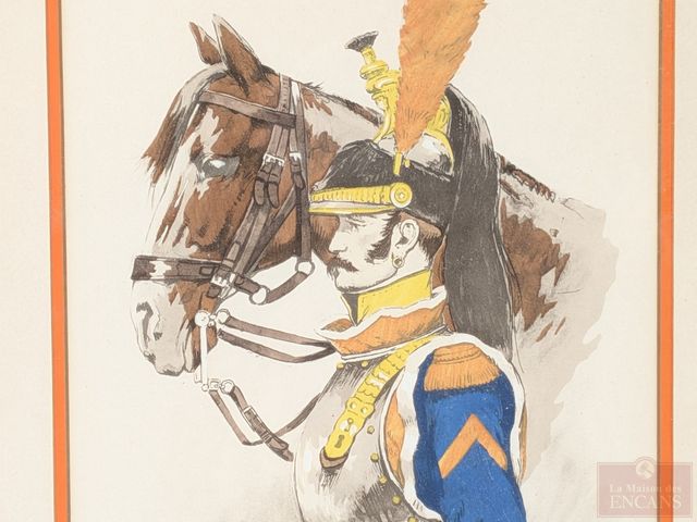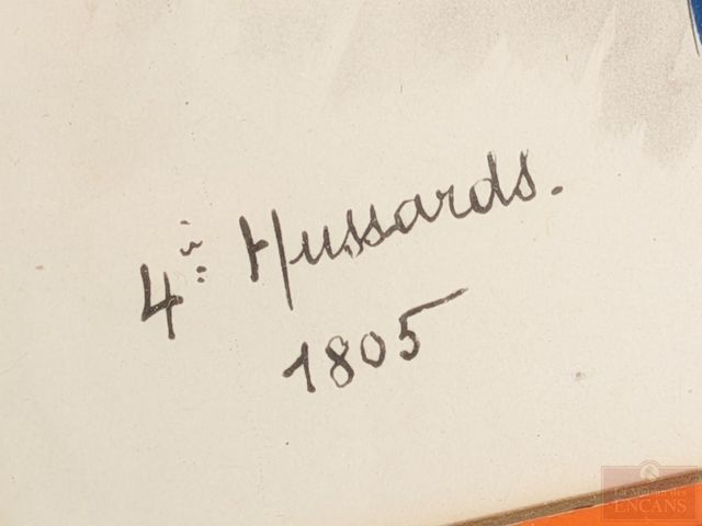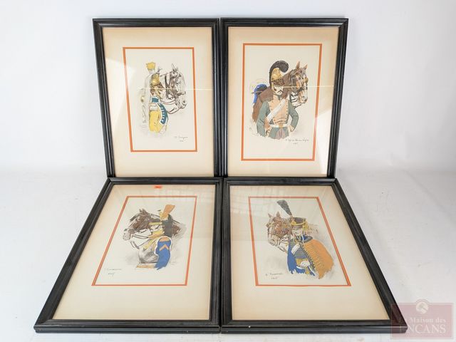 Lot # 173 - Pierre Albert LEROUX (1890-1959) - Quatre aquarelles signées, représentant des soldats de l'armée napoléonienne des régiments des cuirassés, des husseurs, des dragons et des chevaux légers, datées 1805 et 1807 et mesurant 10.5x7 pouces chacune SOLD