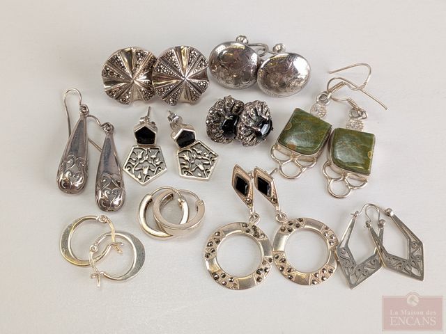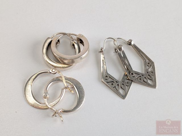Lot # 105 - Lot de paires de boucles d'oreilles en argent