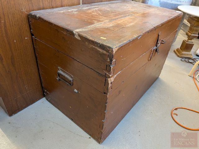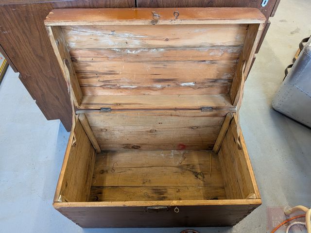 Lot # 32 - Ancienne malle en bois assemblée à la queue d'aronde, mesurant 21x31.5x18 pouces