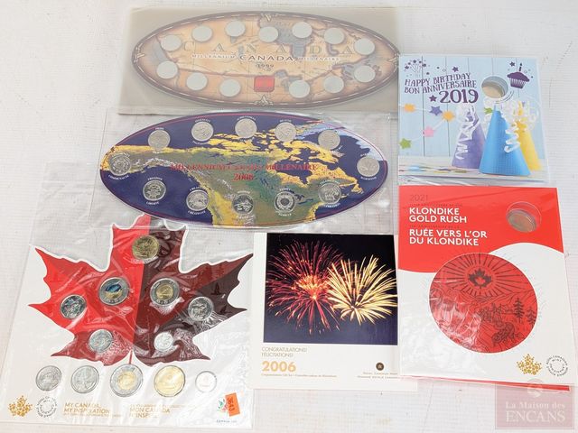 Lot d'ensembles numismatiques canadiens comprenant 1999, 2000, 2006, 2017, 2019, 2021 et 2024
