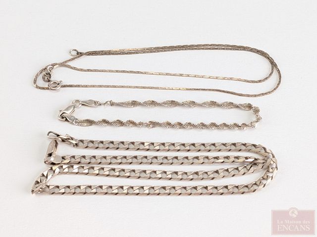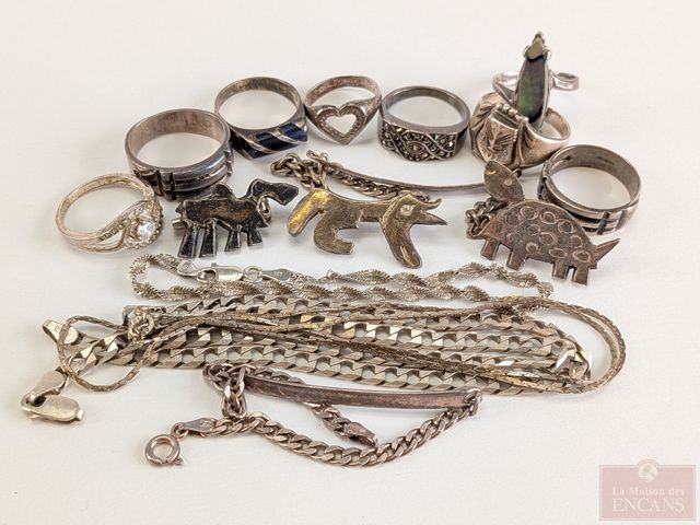 Lot # 108 - Lot de bijoux en argent comprenant bague, chaine, broche