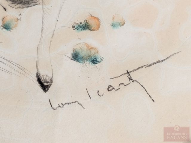 Lot # 13 - Louis ICART- Gravure rehaussée à l'aquarelle, signée et mesurant 10x7.25 pouces