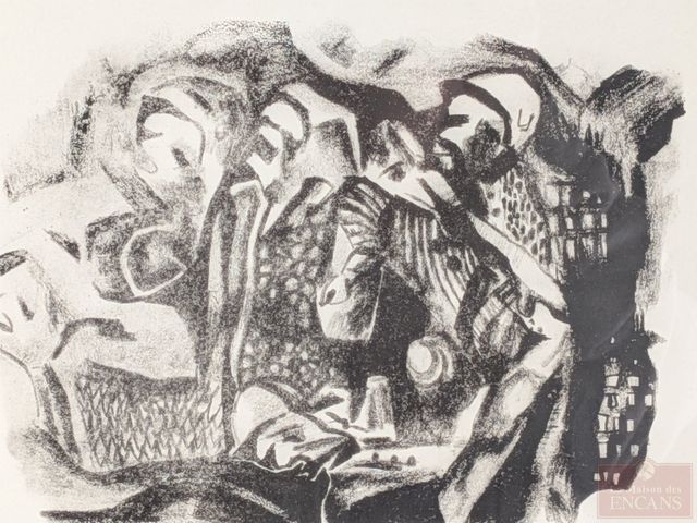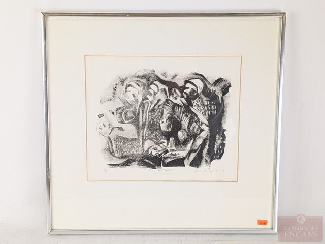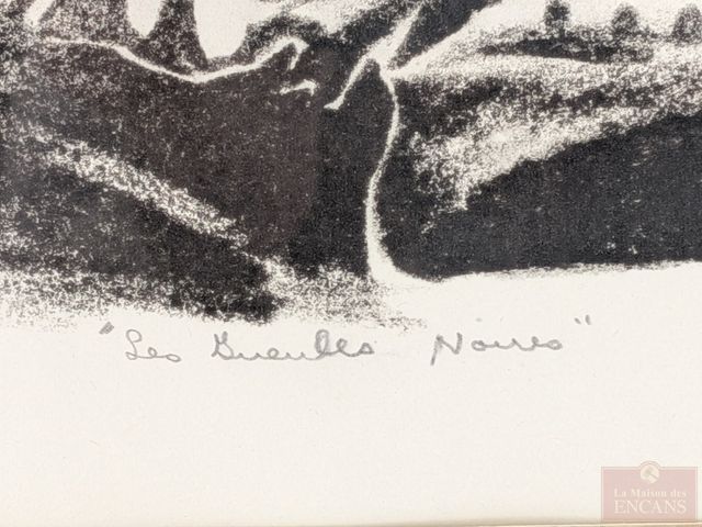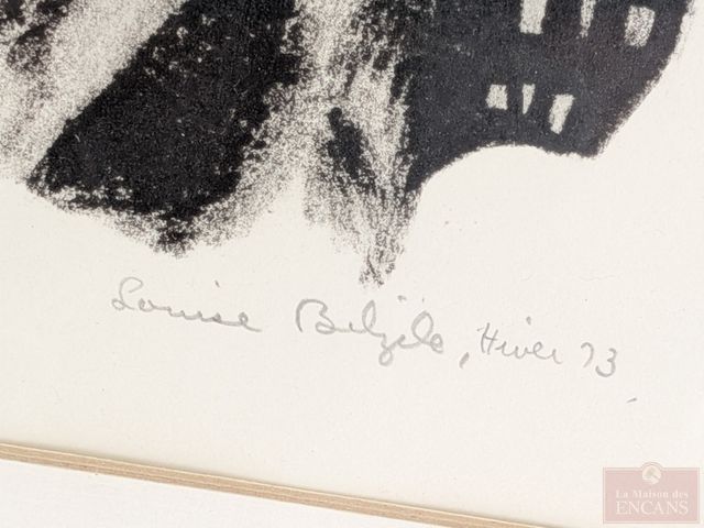 Lot # 48 - Louise BELZILE- Lithographie signée et numérotée 8/9, datant de 1973, mesurant 9x11 pouces et titrée Les gueules noires