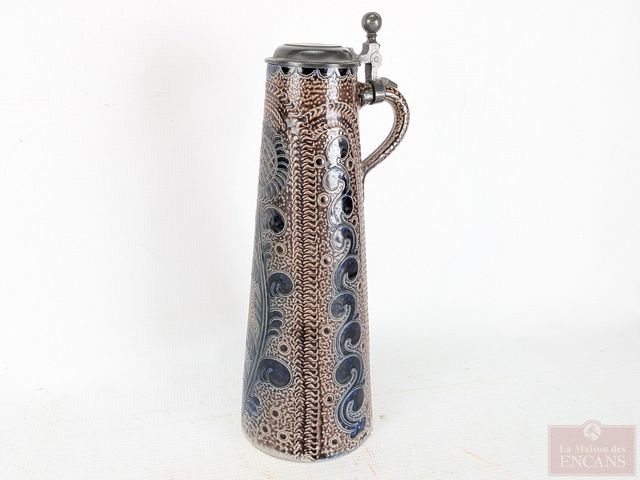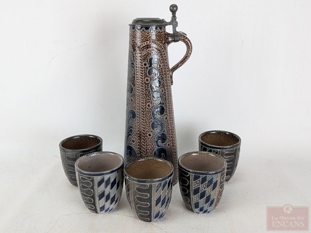 Lot # 149 - Carafe et verres allemands Reinh Merkel Bach Höhr Grenz Hausen en grès, la carafe mesurant 11 pouces de hauteur SOLD