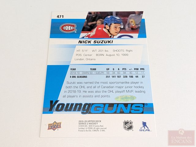 Carte de hockey grand-format Young Guns Jumbo Upper Deck Nick Suzuki, autographiée et certifiée par Upper Deck