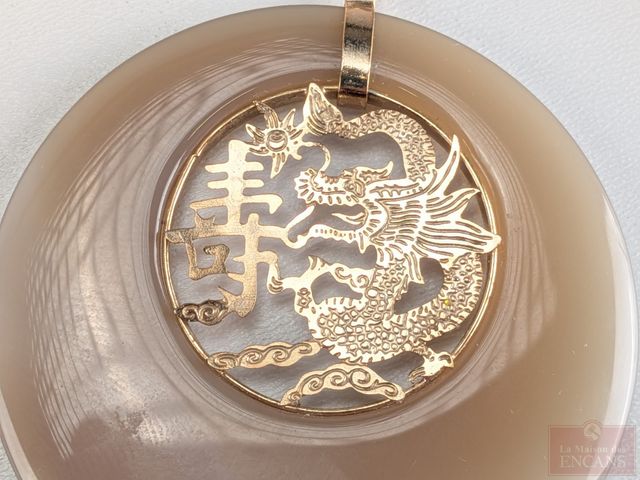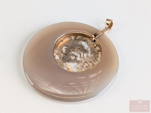 Lot # 82 - Pendentif en jade or 10k, mesurant 2 pouces de diamètre