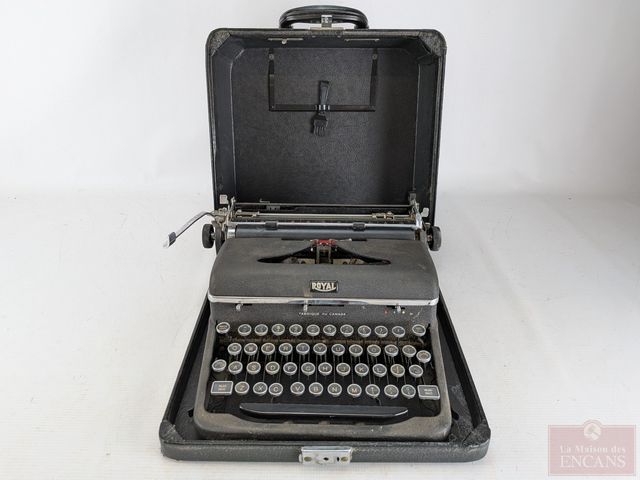 Machine à écrire Royal faite au Canada, dans sa valise de transport mesurant 13 pouces de largeur, fonctionnelle