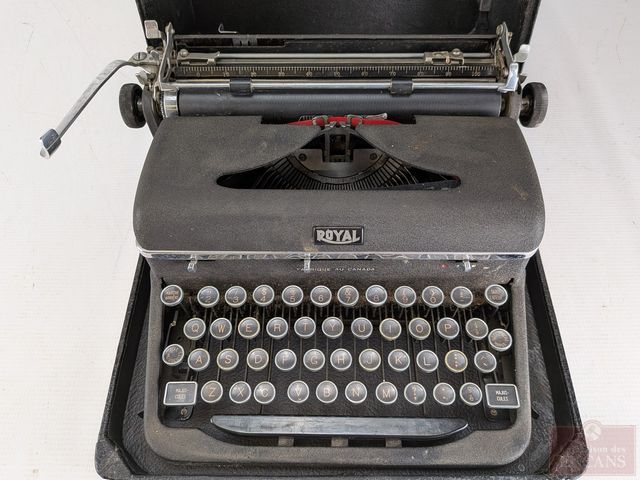 Lot # 33 - Machine à écrire Royal faite au Canada, dans sa valise de transport mesurant 13 pouces de largeur, fonctionnelle