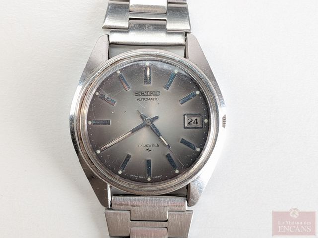 Montre Seiko avec date, mouvement automatique mesurant 36.3 millimètres avec sa couronne, fonctionnelle