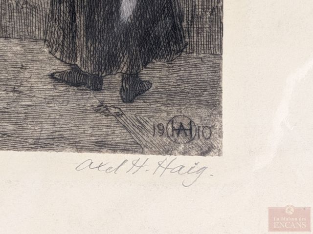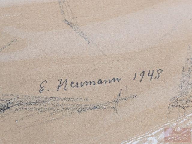 Lot # 157 - Lot d'anciennes œuvres sur papier comprenant eaux-fortes, lithographies et dessins signés, la plus grande œuvre mesurant 28x20 pouces; fusain signé La ballerine 1948 de Ernst Neumann; Pastel Le cheval de John Douglas Lawley; gravure du Capitaine Cook; Dessin de Joseph Hirch, etc. SOLD