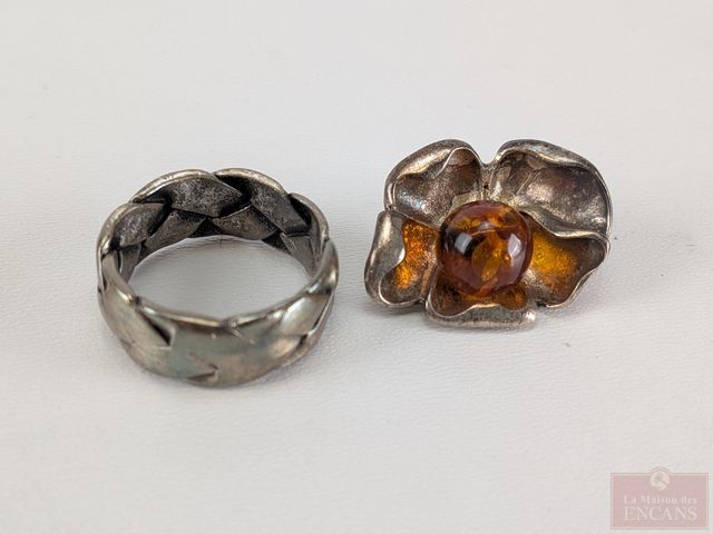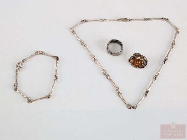 Lot # 68 - Lot de bijoux en argent, dont une bague de taille 7.5