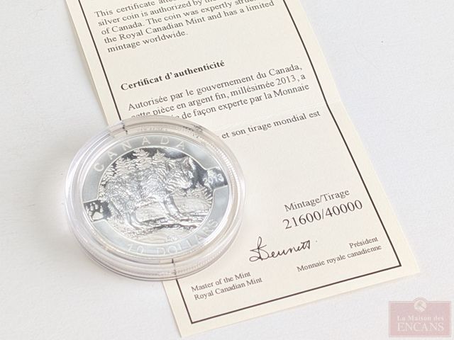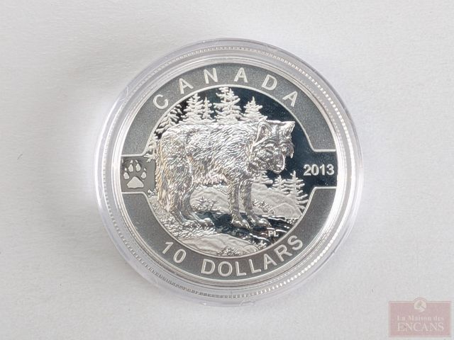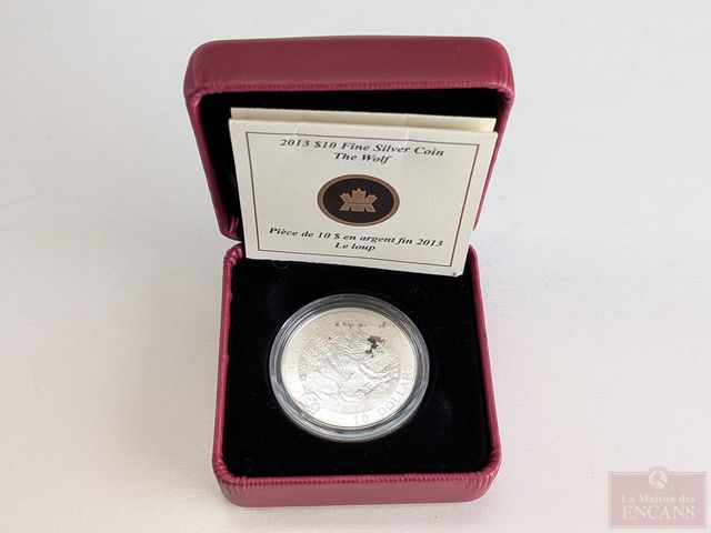 Pièce canadienne de dix dollars 2013 Le loup demie-once d'argent pur 9999, encapsulée, dans sa boite avec certificat, sans taxes