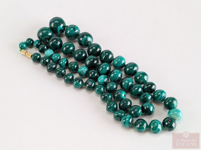 Lot # 87 - Bracelet en argent mesurant 6 pouces de longueur, ainsi que collier de malachite mesurant 20 pouces de longueur