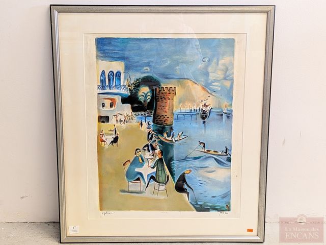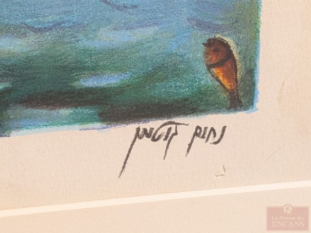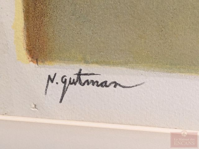 Lot # 17 - Nachum GUTMAN (1898-1980) -Lithographie signée et numérotée, mesurant 22x16.5 pouces et titrée Le port de Jaffa