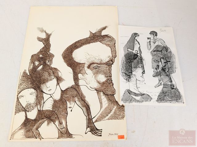 Lot # 156 - PUTOV- Deux dessins à l'encre sur papier, signés, le pus grand mesurant 19x14 pouces SOLD