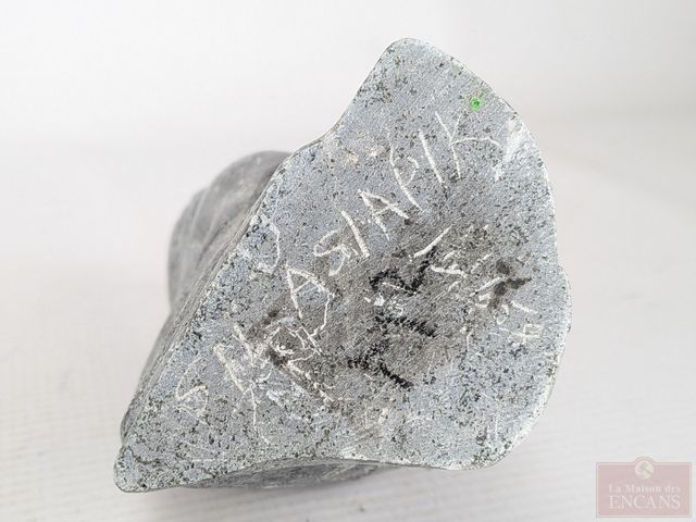 Lot # 91 - SILASIAPIK- Sculpture inuite sur pierre à savon, signée et mesurant 6 pouces de hauteur