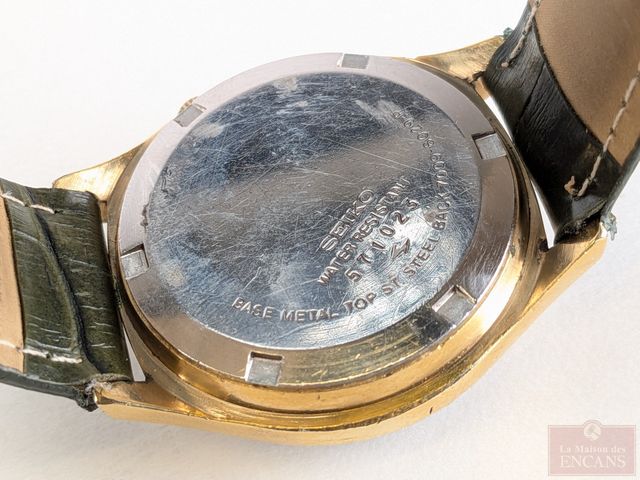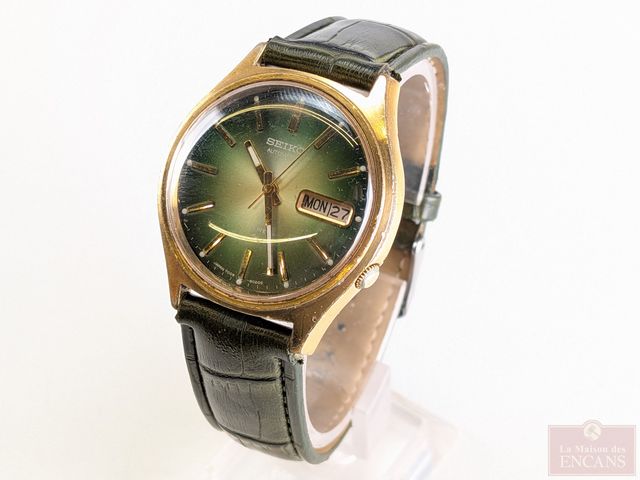Lot # 220 - Montre Seiko avec date et jour, mouvement automatique mesurant 37.1 millimètres avec sa couronne, bracelet de cuir, fonctionnelle SOLD