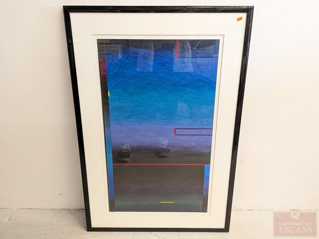 Lot # 11 - Lithographie et collage sur papier mesurant 30x17.5 pouces