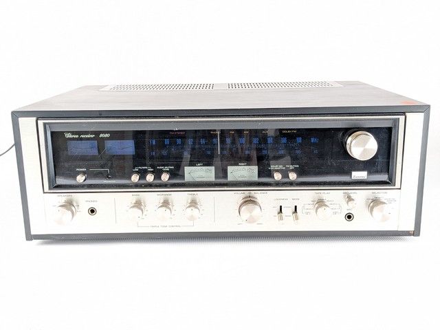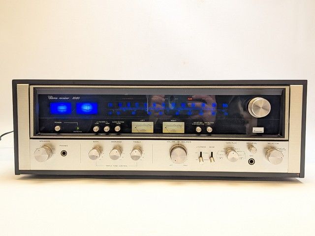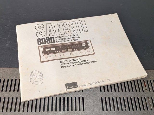 Lot # 8 - Amplificateur Sansui 8080 mesurant 21 pouces de largeur, avec son manuel, fonctionnel, entièrement nettoyé et révisé professionnellement