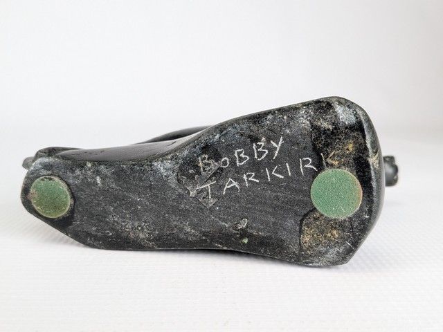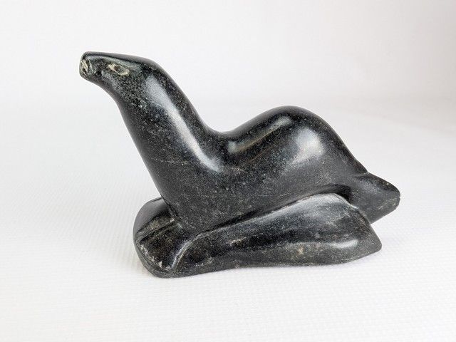 Lot # 96 - Bobby TARKIK (1934-2004) - Très joli phoque avec de superbes détails, signé par l'artiste inuit de très grande grande renommée, spécialisé dans les phoques, les morses, etc. (époque esquimaude) et ayant des œuvres exposées aux musées de la civilisation, des beaux-arts du Québec, de l'Ontario, etc... Le phoque mesurant 6 pouces de longueur et en excellente condition