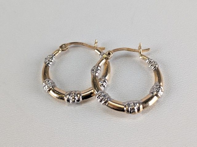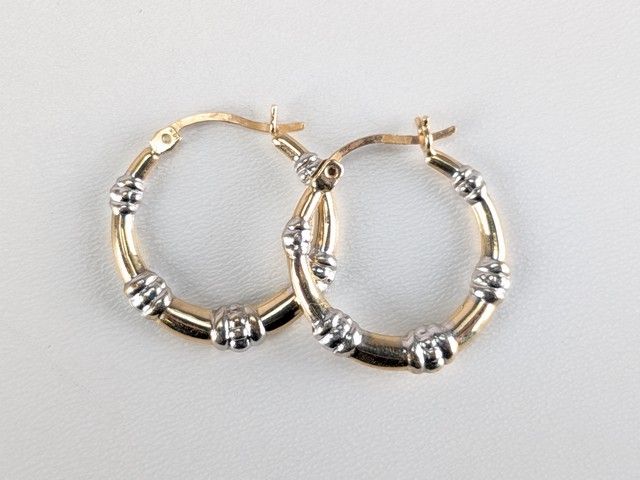 Lot # 78 - Paire de boucles d'oreilles en or 10k, mesurant 20 millimètres de diamètre