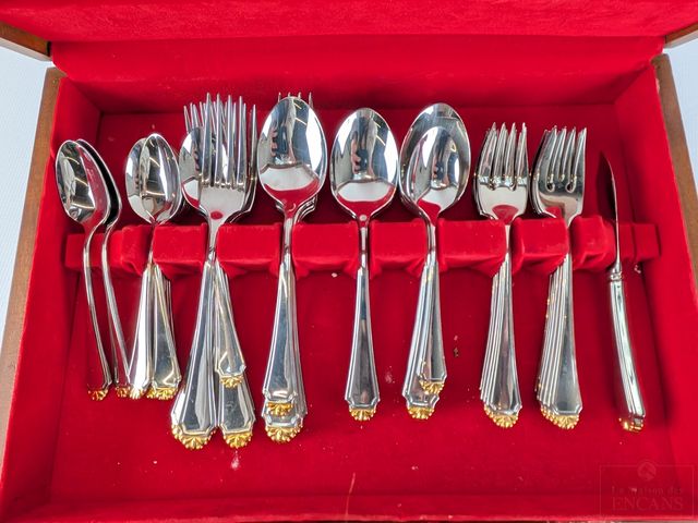 Lot # 145 - Coutellerie Oneida dans son coffret, mesurant 15 pouces de largeur SOLD