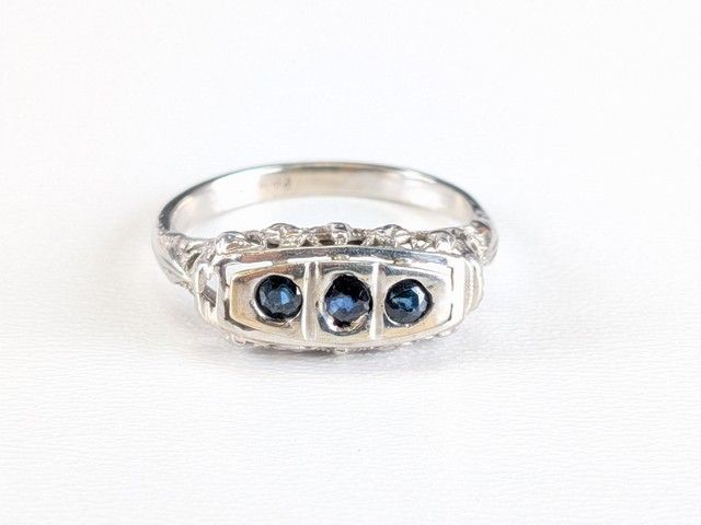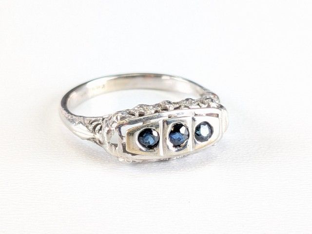 Lot # 111 - Bague victorienne en or blanc 10k sertie de saphirs, circa 1880, taille 7.75