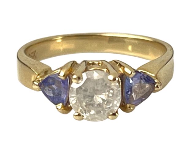 Lot # 113 - Bague en or 10k sertie d'un diamant naturel d'approximativement plus de 1 carat et de deux pierres, taille 7 SOLD
