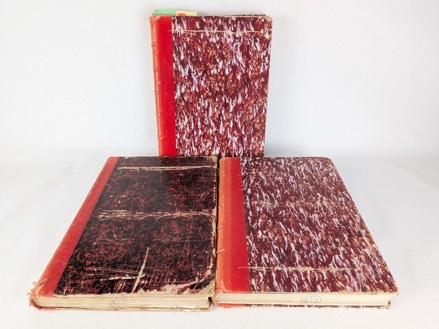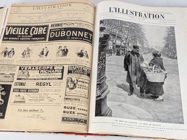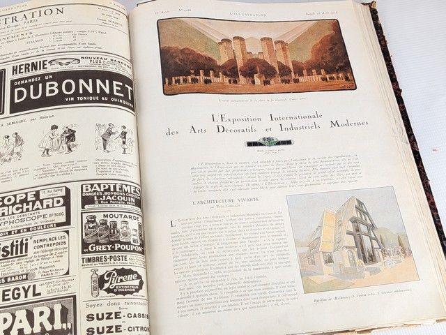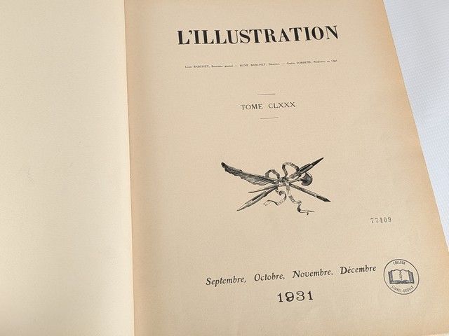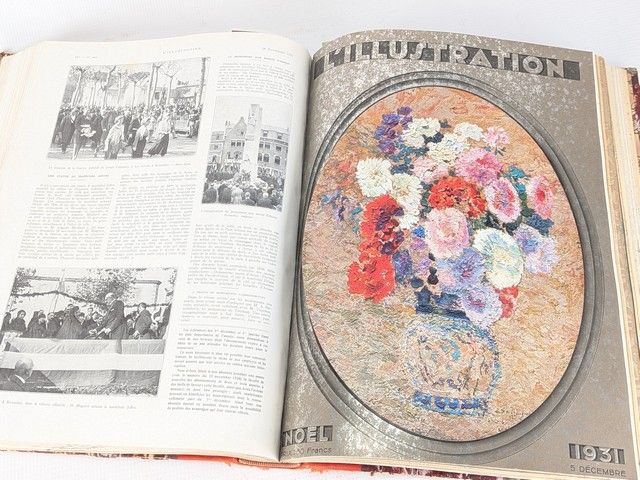 Lot # 4 - Lot de magazines L'Illustration 1925, 1931 et 1932 reliés en trois volumes, mesurant 14.5x12 pouces chacun