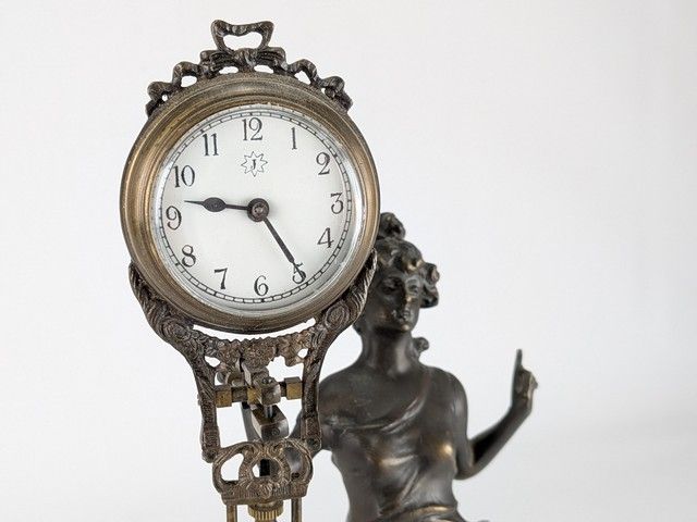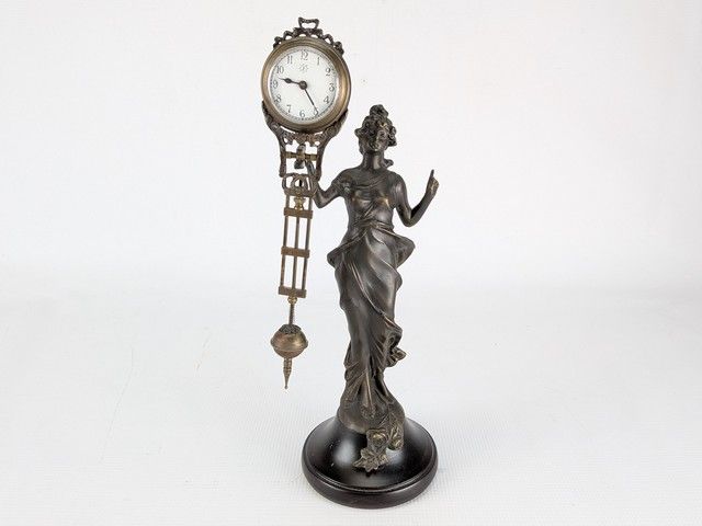 Lot # 43 - Horloge à pendule allemande Junghans en métal, datant des années 1930 et mesurant 13 pouces de hauteur