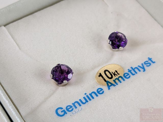 Lot # 186 - Paire de boucles d'oreilles en or blanc 10k serties d'améthystes SOLD