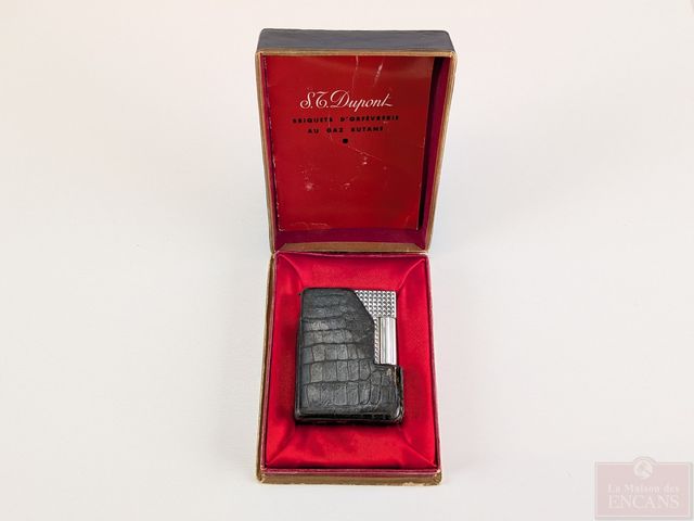 Briquet vintage Dupont fait en France, mesurant 1.75 pouces de hauteur, dans sa boite d'origine