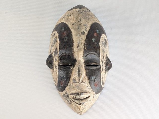 Lot # 17 - Masque africain sculpté sur bois et peint à la main, mesurant 11.5 pouces de hauteur