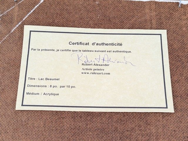 Lot # 6 - Robert ALEXANDER- Acrylique sur panneau signée, mesurant 8x10 pouces et titrée Lac Beaumel