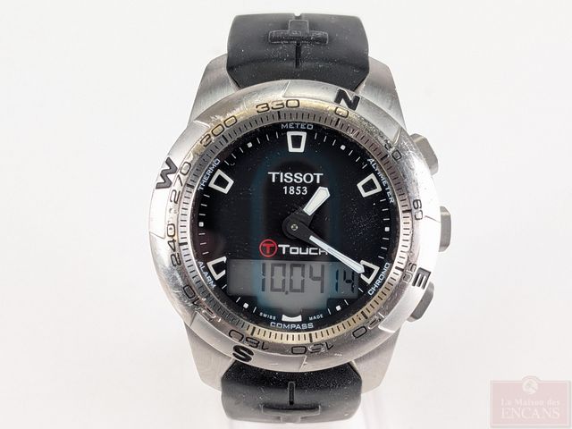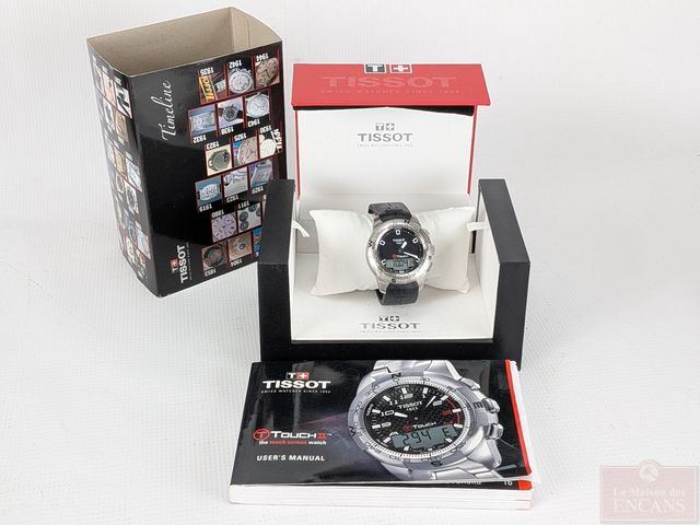 Lot # 198 - Montre Tissot T-Touch II avec cadran bidirectionnel, numéro de référence T047420A, chronographe mesurant 45.2 millimètres, dans sa boite d'origine avec document SOLD