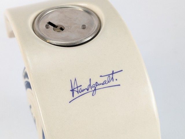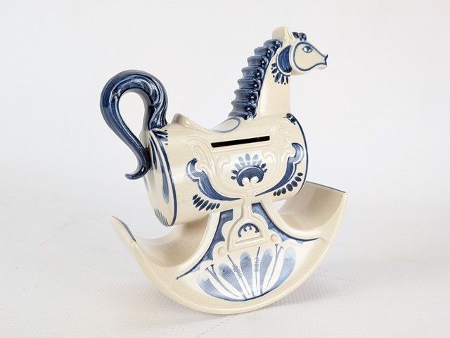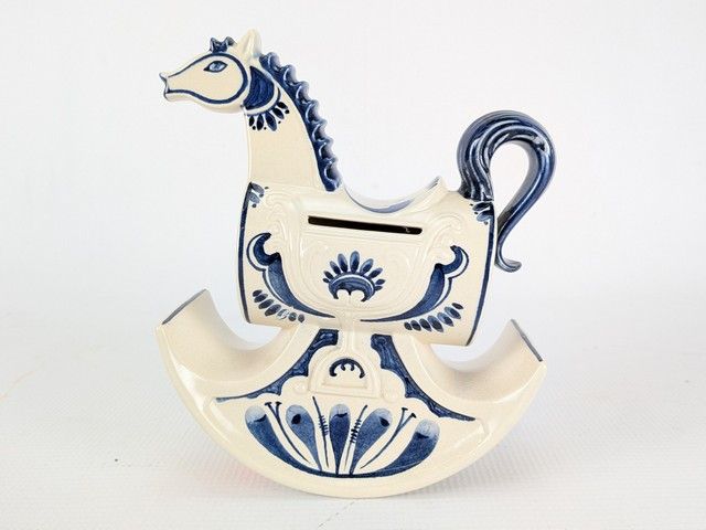 Lot # 60 - Banque en porcelaine Rosenthal design Bjorn Wiinblad, représentant un cheval à bascule, faite en Allemagne et mesurant 6.5 pouces de hauteur, avec sa clef