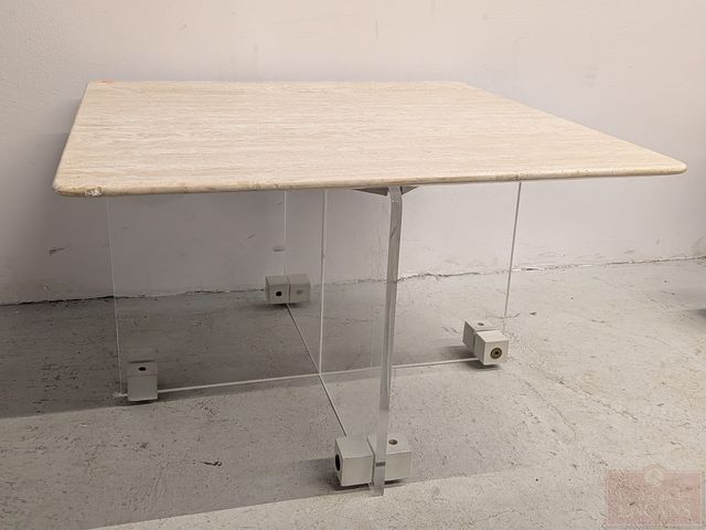 Lot # 159 - Table design vintage à dessus de pierre, mesurant 16x26x26 pouces SOLD