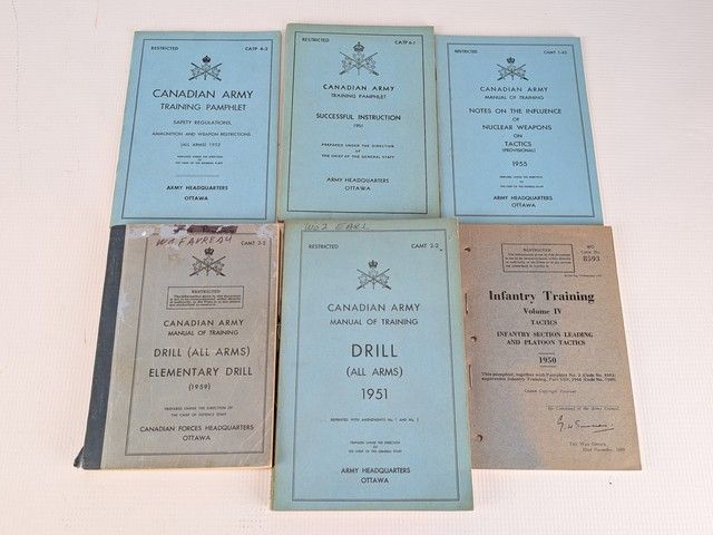 Lot de manuels d'entrainement de l'armée canadienne, datant des années 1940 et 1950