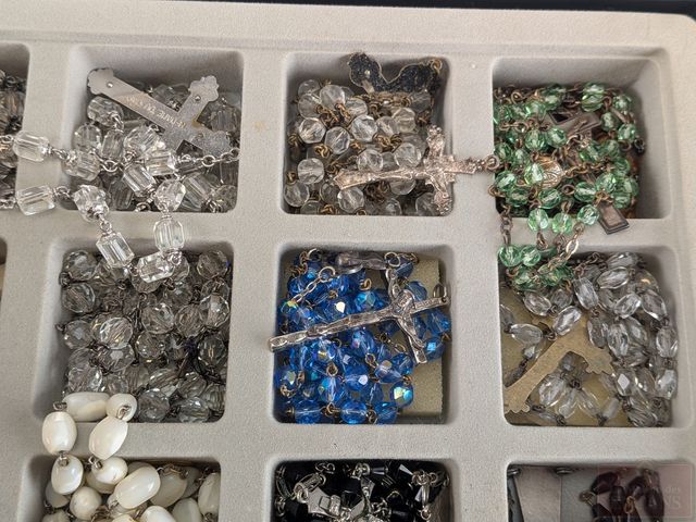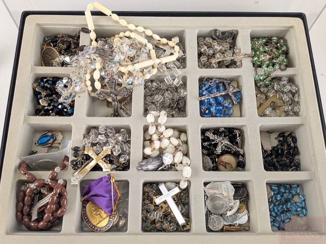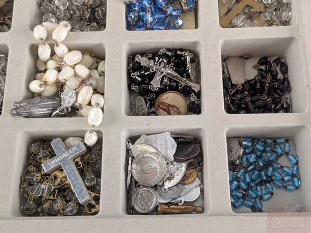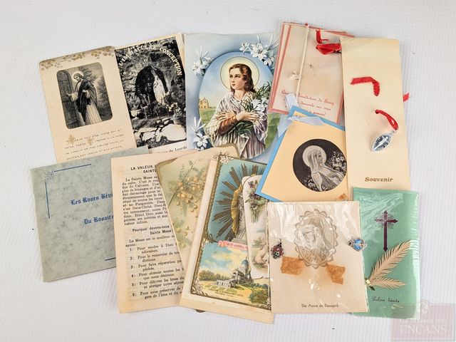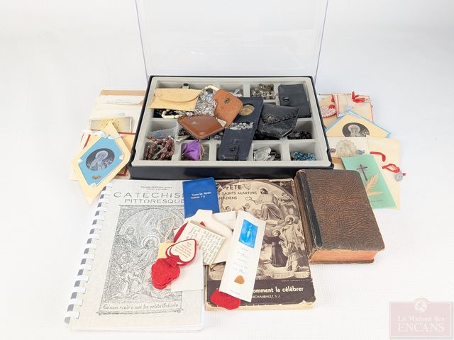 Lot # 124 - Lot religieux comprenant de nombreux chapelets, ainsi que médailles et documents SOLD