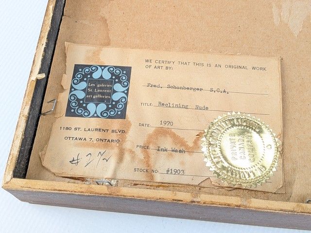 Lot # 36 - Fred SCHONBERGER- Encre sur papier signée, datée 1970 et mesurant 7.5x11.5 pouces