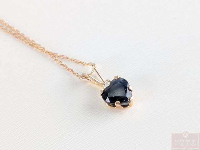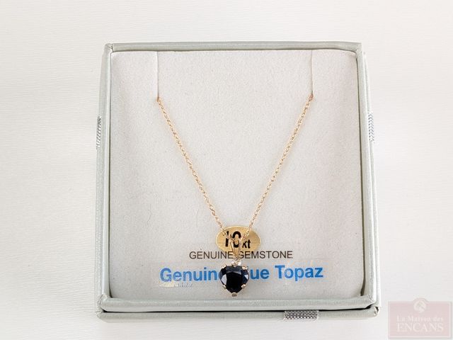 Chaine et pendentif en or 10k sertis d'un topaze, la chaine mesurant 14 pouces de longueur