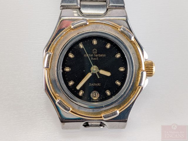 Lot # 237 - Montre Michel Herbelin Paris Safari avec date et boitier en acier inoxydable, référence 12895B, mouvement au quartz mesurant 30 millimètres avec sa couronne, fonctionnelle avec batterie neuve SOLD