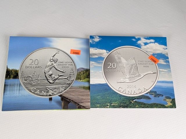 Lot # 115 - Deux pièces canadiennes de vingt dollars 2014 en argent pur 9999, encapsulées, sans taxes