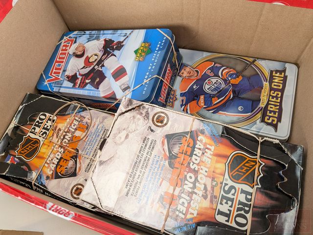 Gros lot de cartes de collection sportives comprenant hockey et baseball, dont Upper Deck et Pro Set