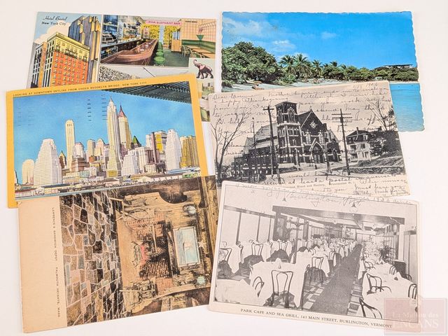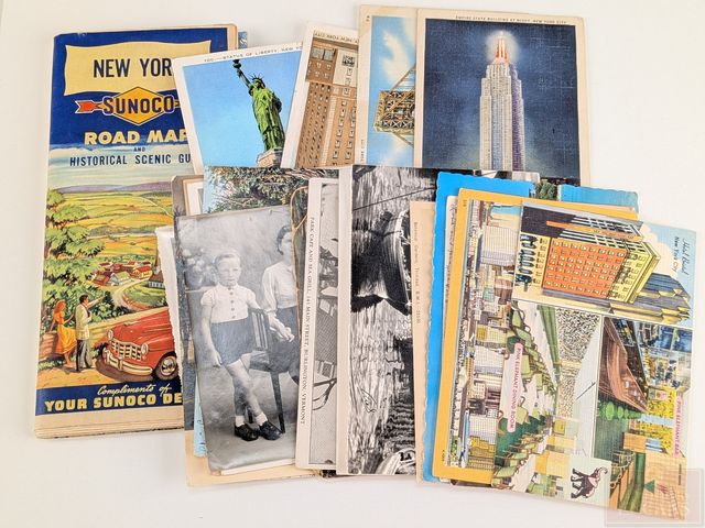 Lot # 238 - Lot de cartes postales vintages canadiennes et américaines, ainsi qu'un atlas routier de New-York SOLD