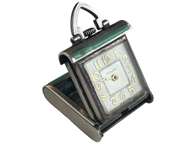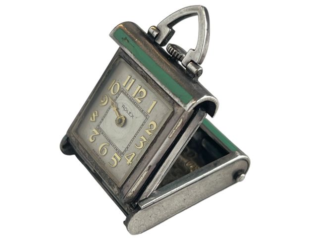 Cadran de voyage Rolex avec boitier en argent sterling et émail, datant des années 1930, mesurant 25 millimètres de largeur